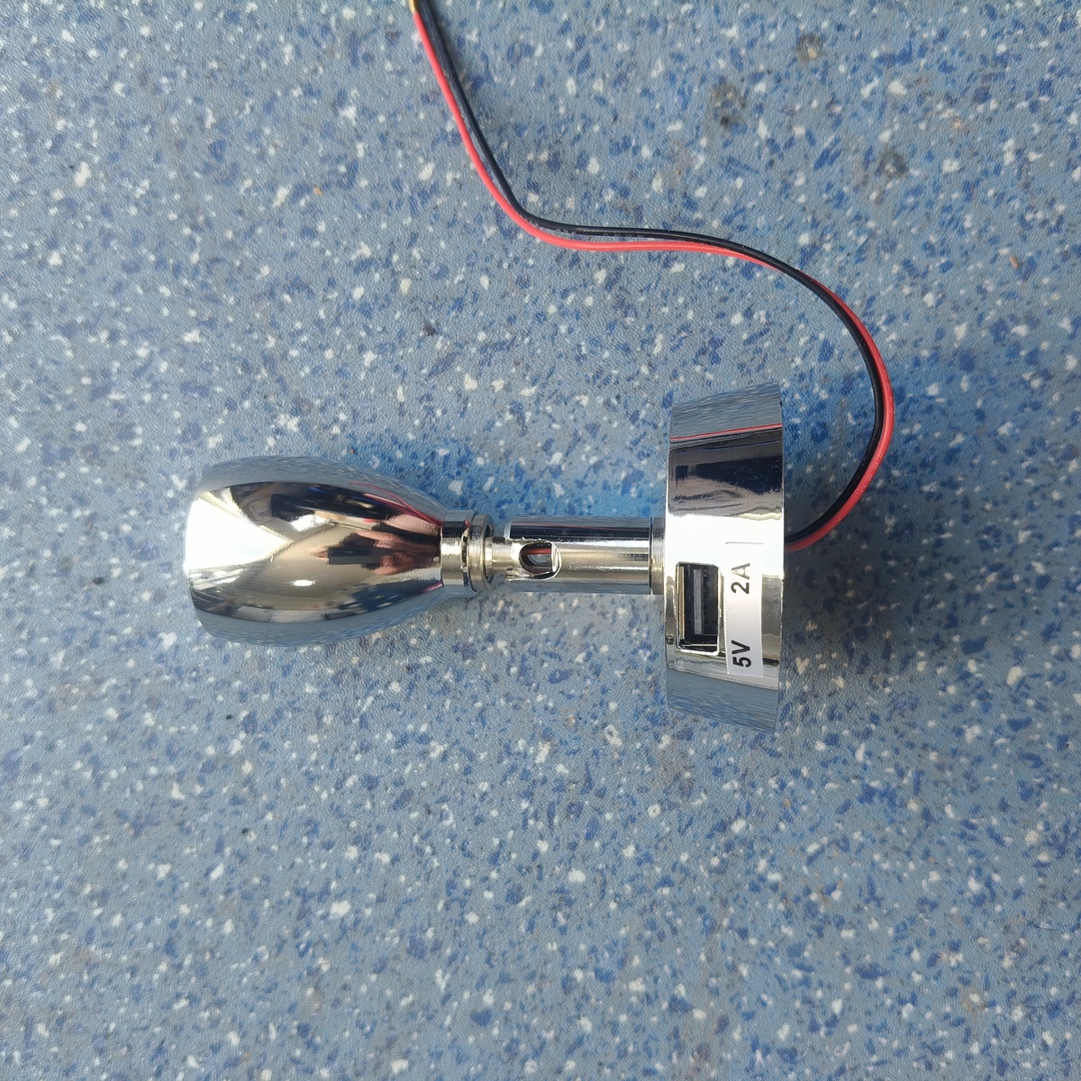 12v Switch Operated Directional LED Light & USB Chrome Base Diameter 55mm Base Height 15mm Overall Height 90mm Voltage 2.5w-12v Weight 82gms